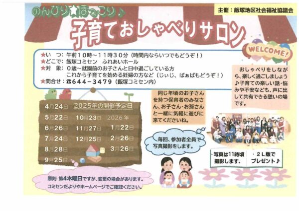 子育ての楽しい話、悩みや不安なども、声に出して共有できる憩いの場です。