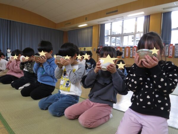 和三盆のくちどけの良さと優しい甘み、普段は飲まない少し苦いお茶をいただき、お茶会のおごそかな雰囲気をみんなで味わいました![]()