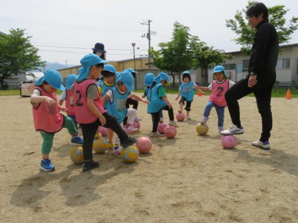 あじさい組(4歳児)がサッカー教室に参加しました⚽