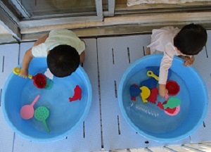 ちょうちょ組(2歳児) 「つめたーい」「気持ち良いね」「たのしいね」