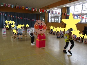 あひる組さんの親子競技は、「アンパンマン 新しい顔だよ」