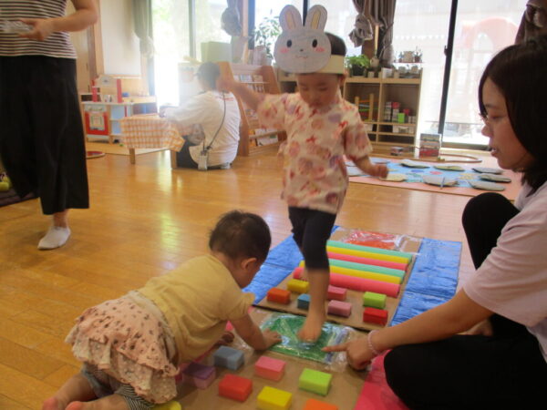 様々な素材の感触を楽しみながら、触れたり歩いたりして楽しみましたよ♪