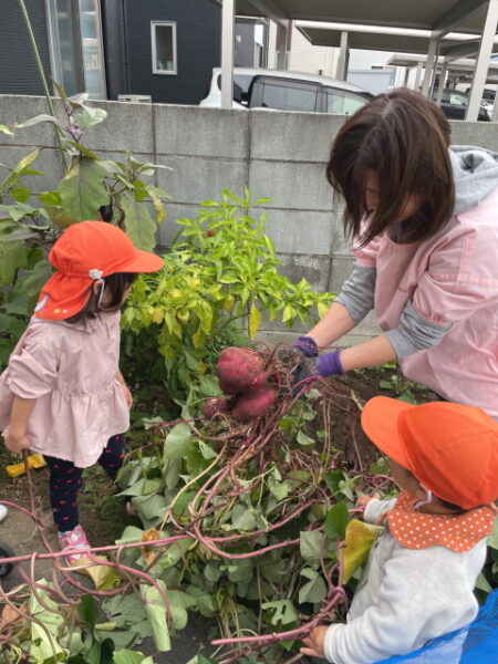 大きなさつま芋にビックリ‼秋の収穫をみんなで喜びました![]()