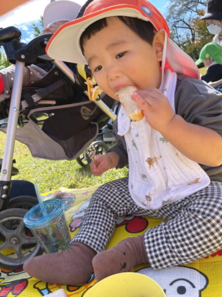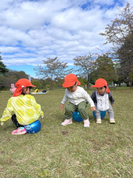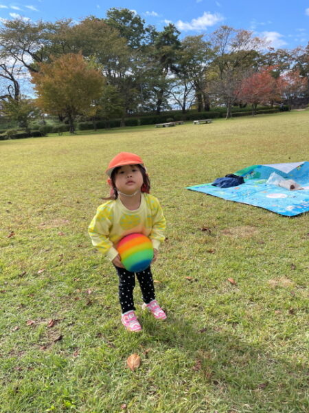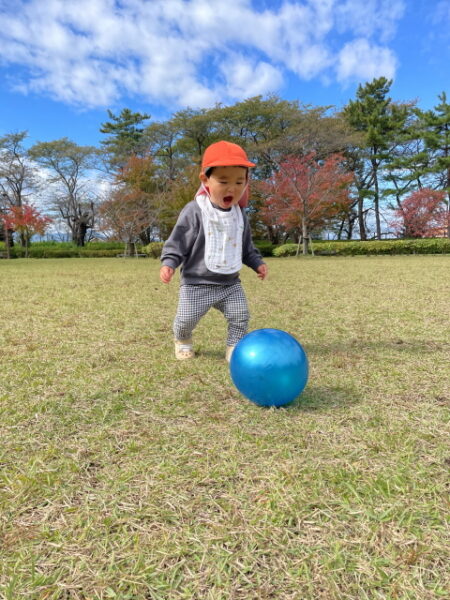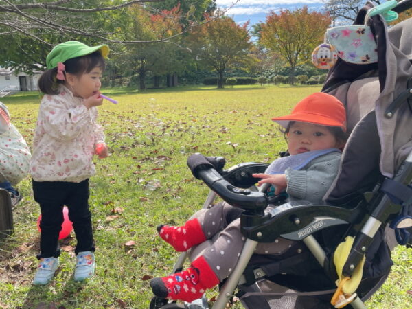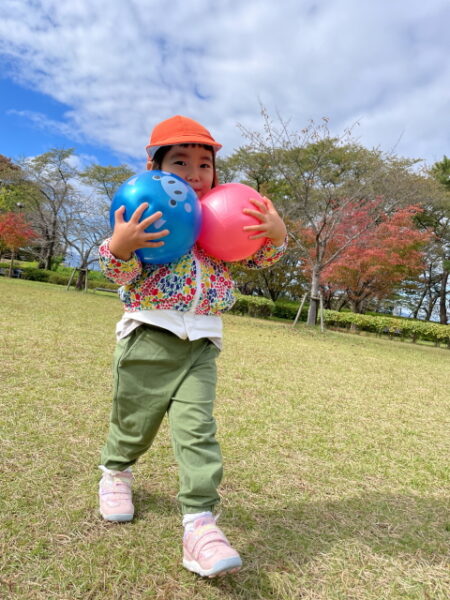 広い芝生の広場で、近くの保育ママらみぃさんと合流してたくさん遊んできましたよ![]()