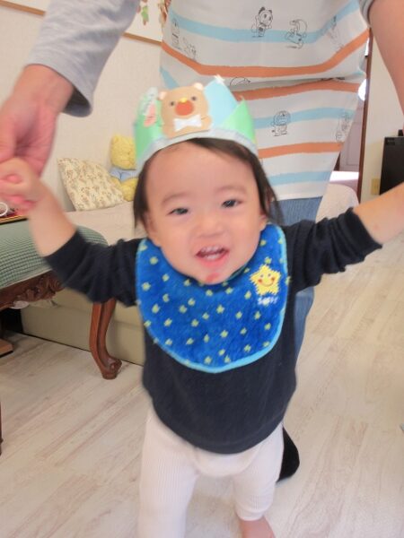 みんなの後をしっかりとした足取りで追いかけ、話しかけられると二コーッ