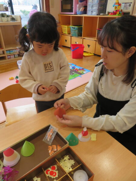 今週はクリスマス製作を企画すると、たくさんのお友達が製作を楽しみに遊びに来てくれました。
