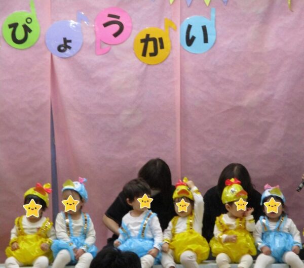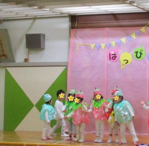たんぽぽ組(2歳児)は、果物に変身して、「フルーツパーティー」の表現遊び![]()