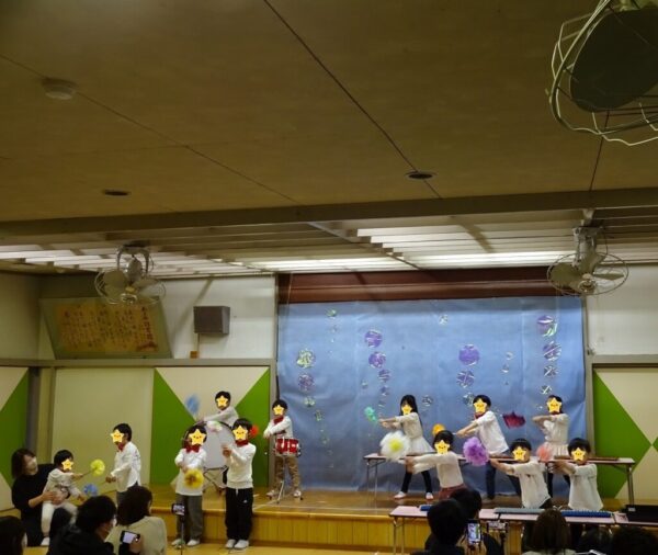 すみれ組(3歳児)、ひまわり組(4歳児)、さくら組(5歳児)は合同でスイミーの劇をしました![]()