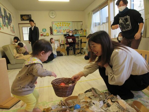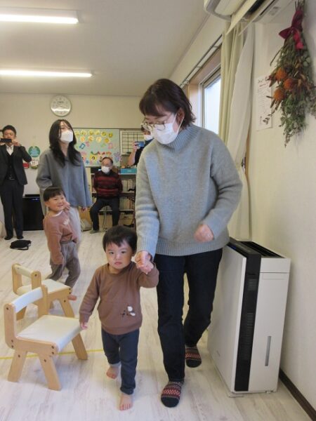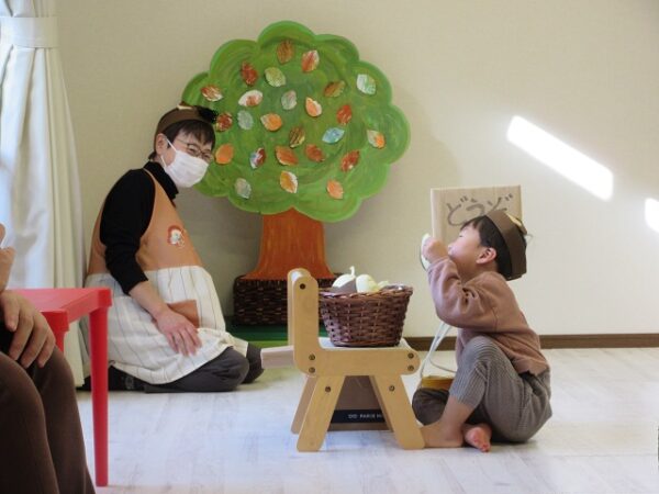 親子で遊ぼうでは椅子取りゲームや栗拾いゲームなど、ママ達と一緒に嬉しそうに楽しむ姿が印象的でした