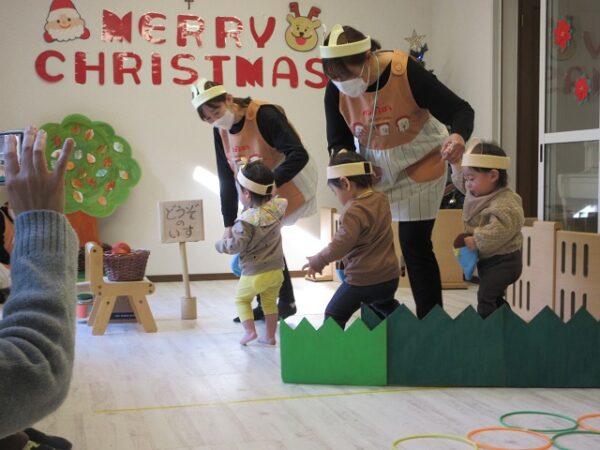 昨日は、親子クリスマス会を開きました🎅大好きなパパママから離れるのはちょっぴりドキドキだったけど、絵本「どうぞのいす」の劇発表や歌の発表、とても頑張ってくれた子供たち![]()