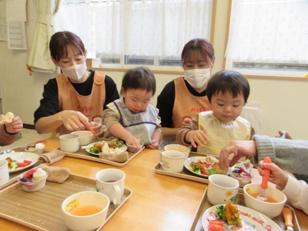 給食特別メニューも参観&試食もしていただき、にぎやかな親子クリスマス会となりました![]()