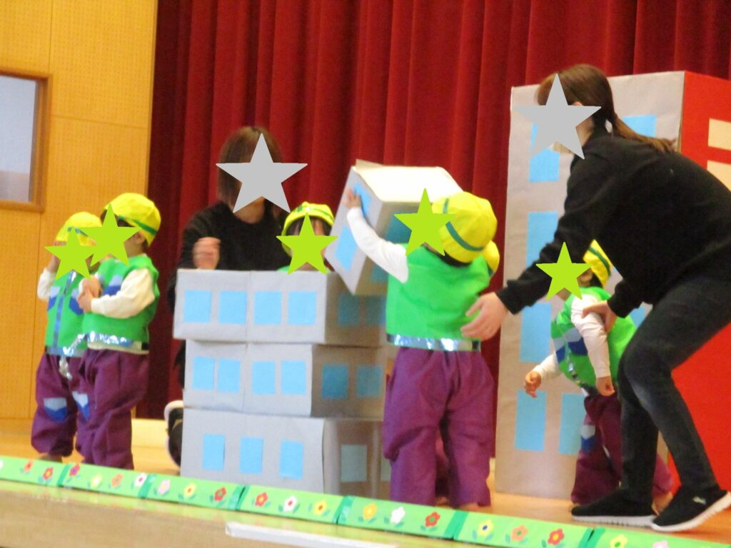 セリフも大きな声で言えて、掛け合いのリズムやタイミングも練習した成果を発揮できたようで、とってもかっこいいぞう組さんでした