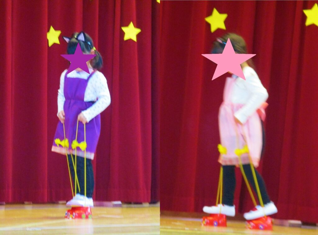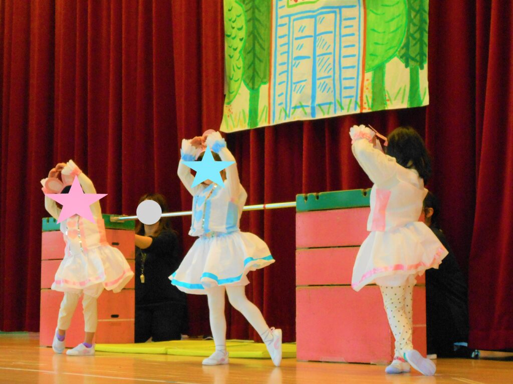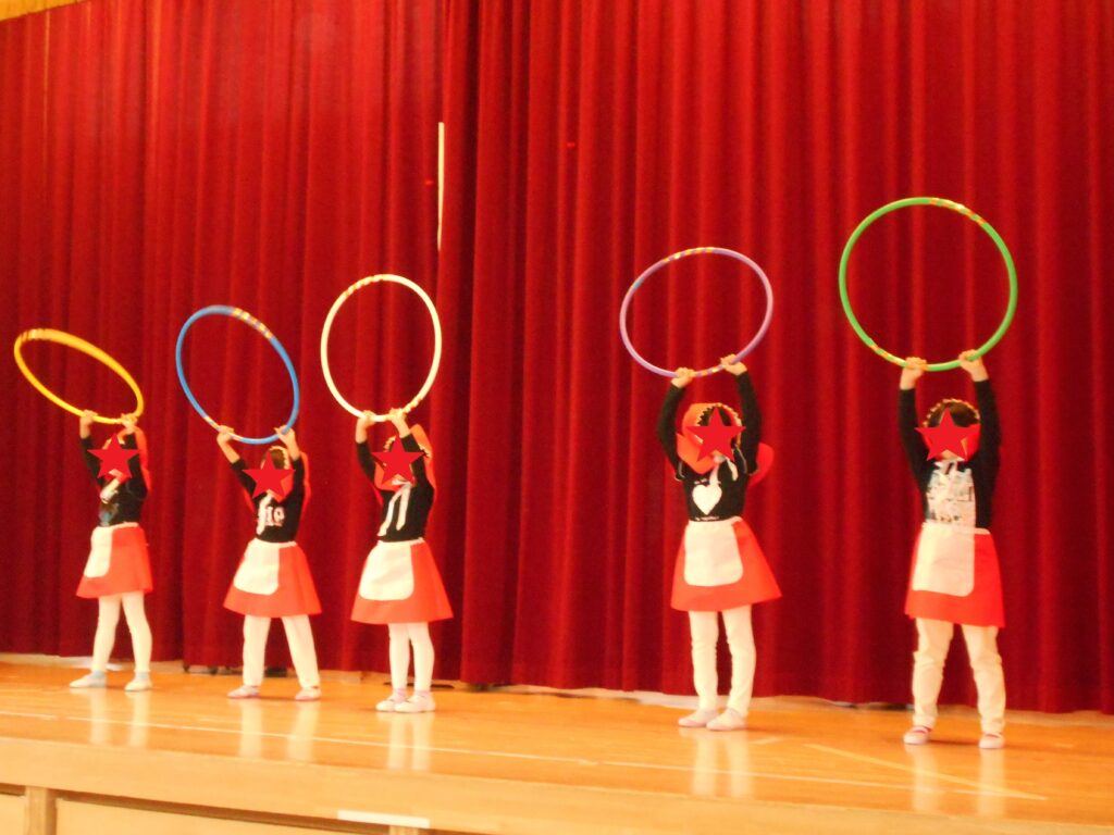 また、役ごとに「なわとび・鉄棒・バスケット・フラフープダンス・組体操」などにも挑戦し、自分たちの得意技を元気いっぱい披露してくれました