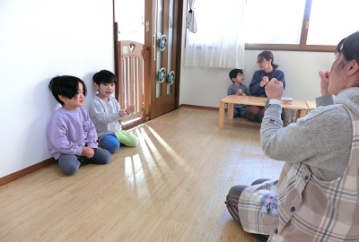 朝の会で手遊び「サンタクロース」をして、絵本「まどからおくりもの」をみました😊🎶