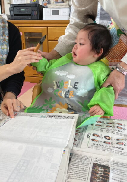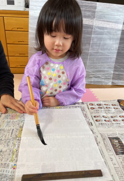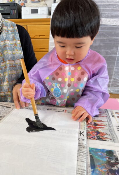 今日はお正月らしく「書初め」「福笑い」「かるた」に挑戦して遊びましたよ![]()