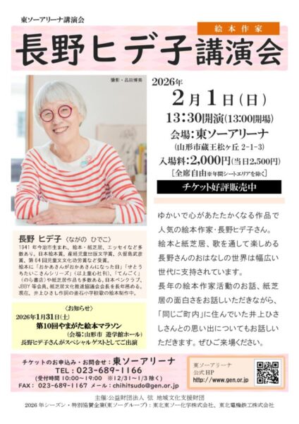 知らせ】2月1日(日)13時30分より、絵本作家の長野ヒデ子先生の講演会を開催します。