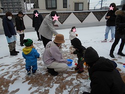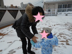つばさ保育園の屋上テラスで、ちょっぴり雪遊びを行いました