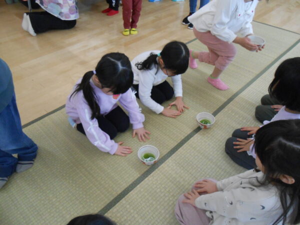 先週、うさぎ組(3歳児)・こあら組(4歳児)・ぞう組(5歳児)がお茶会を行いました🍵![]()