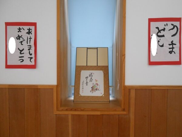 掛け軸や書き初め、生け花を見たり、琴の音色の音楽を聴いて、目や耳でもお茶会を楽しみました![]()
