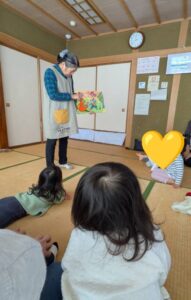 室内では、お楽しみ会をして、紙芝居や手遊びをしてとっても楽しかったです😆❤️