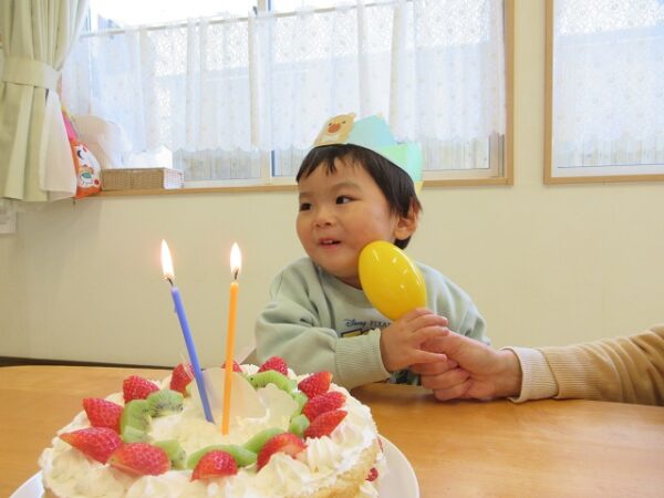 お誕生会のインタビューにもしっかりと答えることができて、みんなに祝福されてとても嬉しそうでした![]()