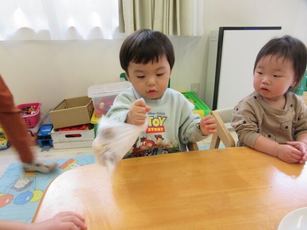 まもなく2歳になる男の子。お友達が大好きで、追いかけっこをしたりまねっこをしてみたり、1度笑いのツボに入ると給食が手につかないくらい笑い続けることも・・・