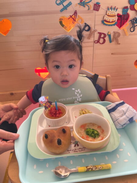 みんなで作った今日の誕生会の給食は、いつにも増して美味しかったね♪