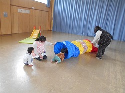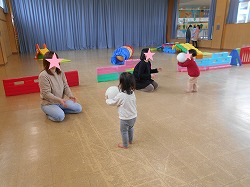 暦の上では春ですが、外遊びにはまだまだ寒い季節、広いお遊戯室で体をたくさん動かすことができました