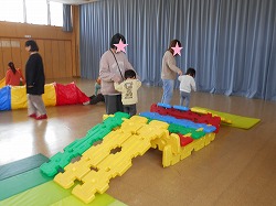 お遊戯室で遊ぼうを行い、たくさんのお友達とお母さん、お父さんが参加してくださいました