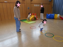 リングで上手に両足跳びをするお友達を見て、順番にチャレンジする姿も見られました