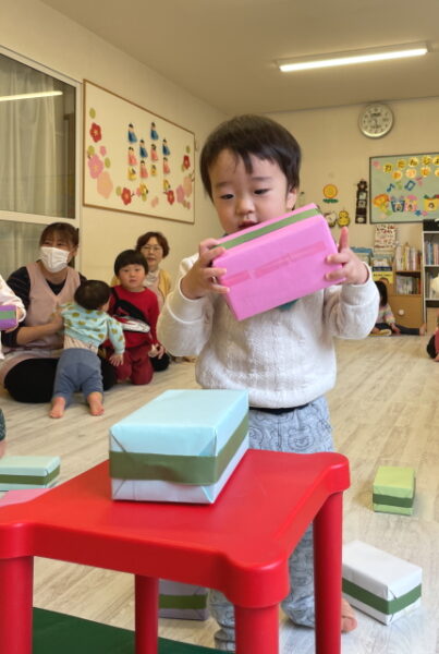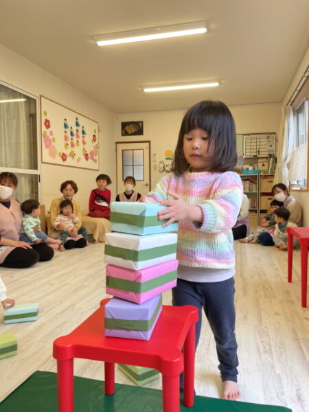 ひなまつりのお話しを聞いてダンスやゲームをしたり、製作をしたり、一緒におやつもごちそうになりお土産も頂いて大満喫の子どもたち![]()