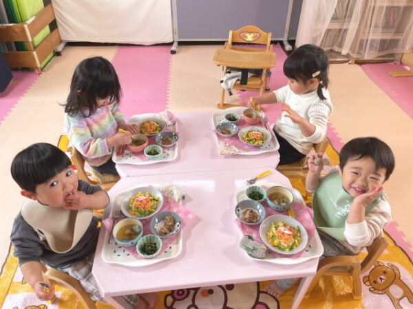 みんなで美味しい給食を囲んで大満足