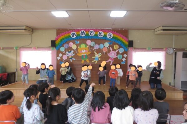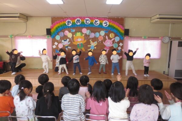 今までたくさん遊んでくれたすみれ組さんに感謝の気持ちを込めて、それぞれのクラスが歌やダンスで盛り上げてくれました![]()