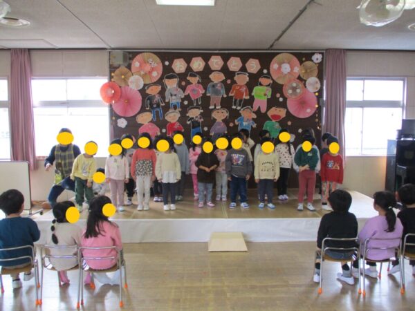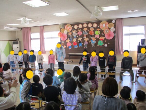 ぱんだ組(3歳児)さん、くま組(4歳児)さんは、🎵またね☆の歌を披露してくれました。