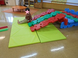 いつもと違う支援センターの様子に、不思議そうな表情のお友達