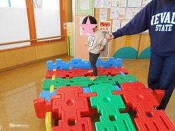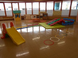 支援センターに、マルチパネル、バランス平均台、すべり台、リングを組み合わせたサーキットが登場