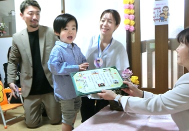 いつもと違う雰囲気にドキドキしている様子が伝わってきましたが、練習していた証書の受け取り方、上手にできたね😊