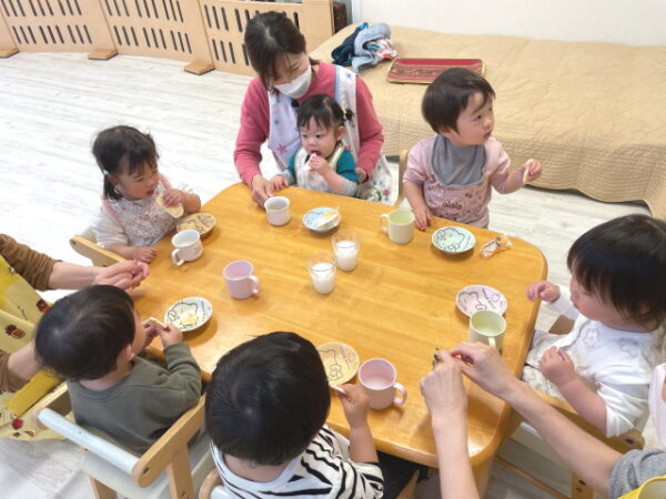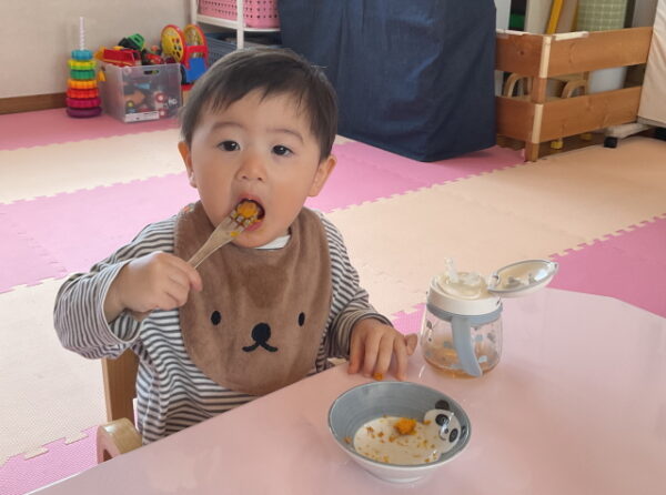午前のおやつ上手に食べてるよ♪