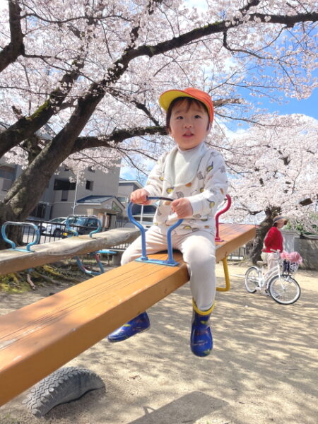 桜の中でシーソー最高だよ♪