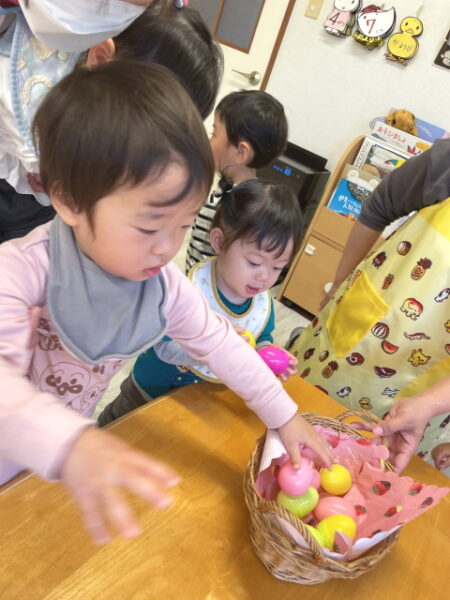 新年度になってから約1週間経ち、午前中の慣らし保育にも慣れてニコニコ笑顔が見られるようになってきた新入園児のお友達