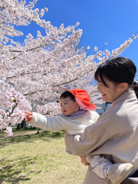 今日は近くの保育ママらみぃさん、にじさんと一緒に霞城公園にお花見に行ってきました🌸