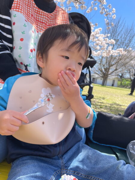 たくさん遊んだらお腹がペコペコ!みんなで手作りのお弁当を囲んで大満足のお花見となりました🌸