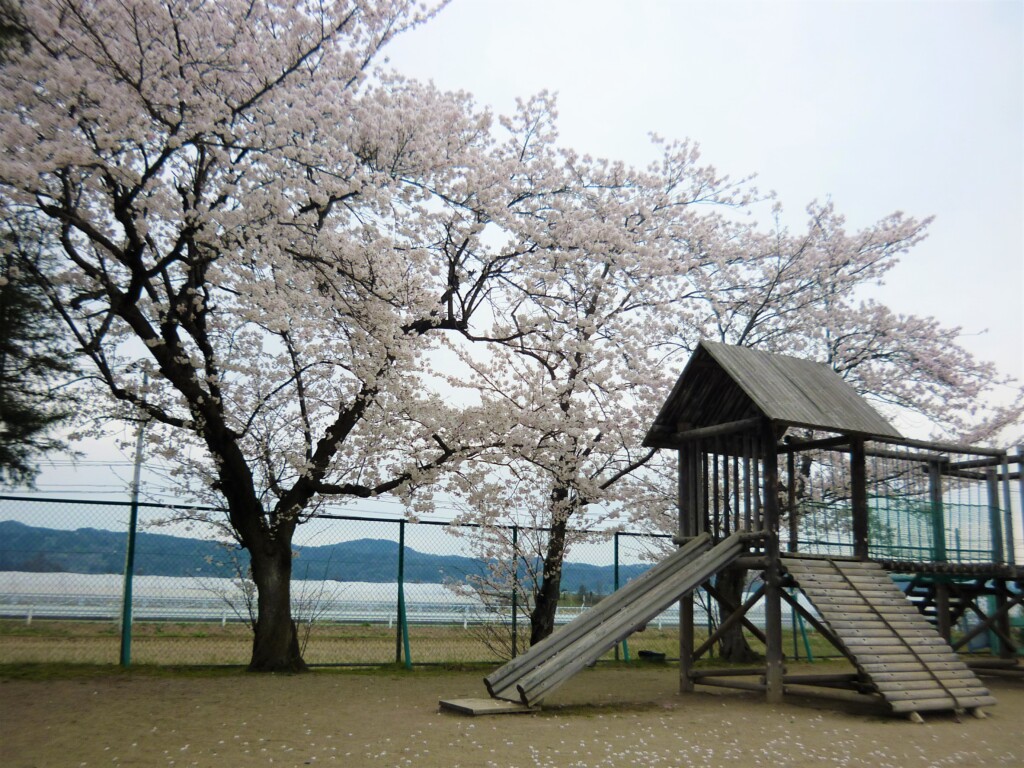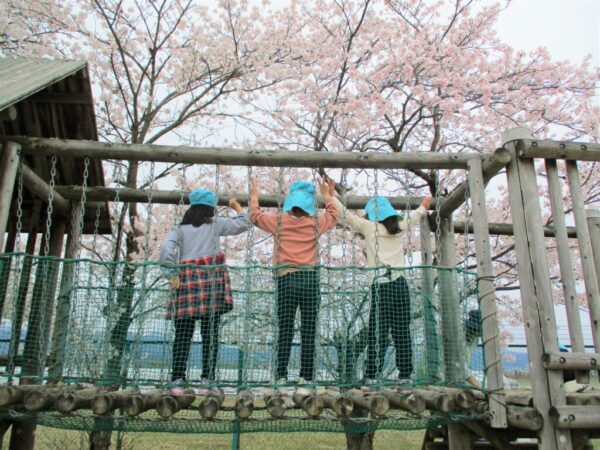 アスレチックに登れば、さらに桜を近くに見ることができ、