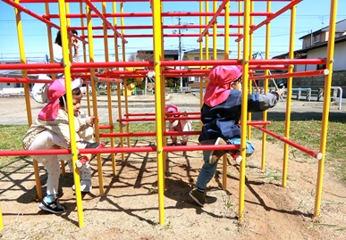 ジャングルジムを上から通ってみたり、下からくぐってみたりしたね🥰