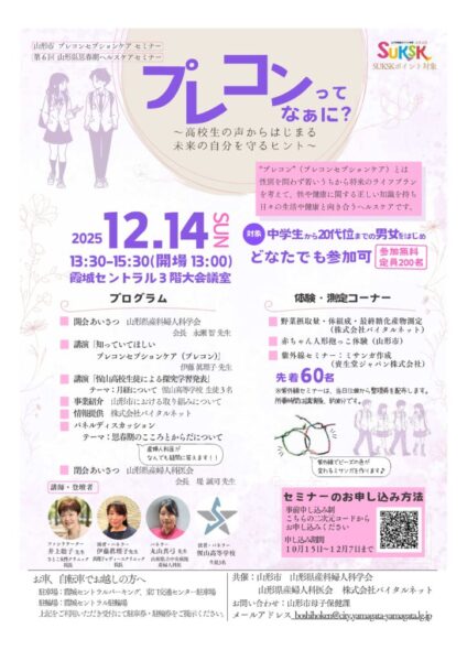 プレコンセプションケアとは性別を問わず若いうちから将来のライフプランを考えて、性や健康に関する知識を持ち日々の生活や健康と向き合うヘルスケアのことです。自分のからだやこころの健康について考える機会として、ぜひセミナーへご参加ください。