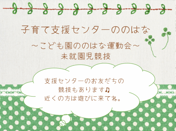 山形市第四中学校でこども園ののはなの運動会を行います。手作りメダルとアンパンマンジュースのプレゼントもありますので、ぜひ参加してくださいね。駐車場はありませんので、車はご遠慮ください。