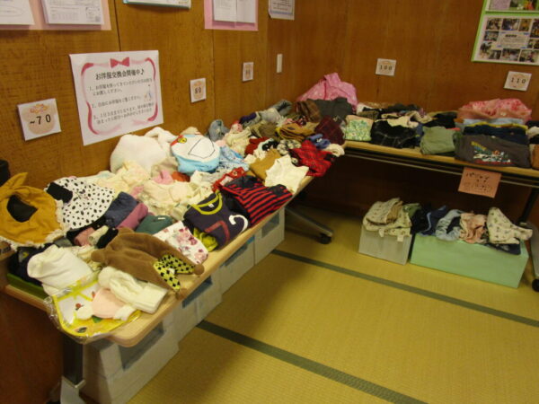 先月のイベント子供服交換会は、急なお休みがあったため延長します。お持ちいただいたお洋服がたくさんありますので、ぜひ遊びにいらしたときにお持ちください♪なお、お洋服の寄付は受付を終了させていただきます。